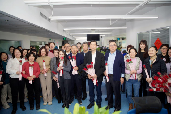 3月7日,在“三八”国际劳动妇女节到来之际,储学军同志等公司领导,及工会、妇委会向公司女员工送上鲜花等慰问品,向大家致以节日问候。