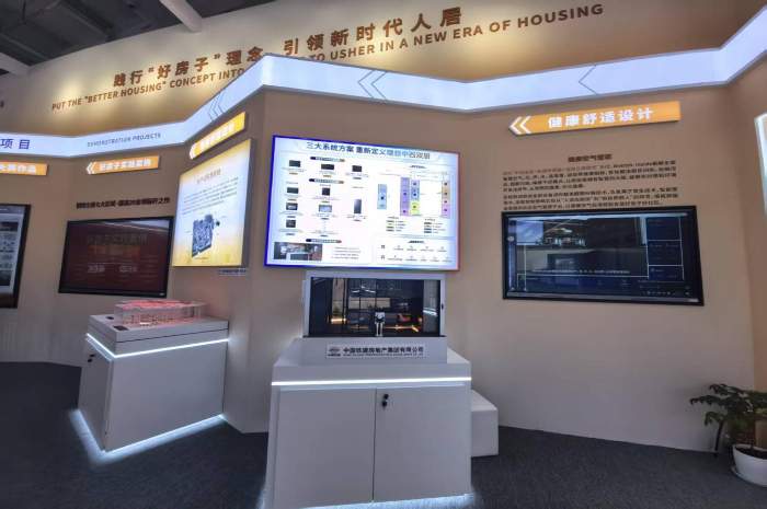 在智能建造和装配式装修展区,中国建筑围绕数字设计引领、工厂预制集成、现场智能建造、城市运维服务、好房子产品交付五大板块,通过实物设备、互动体验与案例成果,呈现从“工程思维”到“工业、产品、服务思维”的转型实践,为行业提供可复制的智能建造好房子发展样本。
