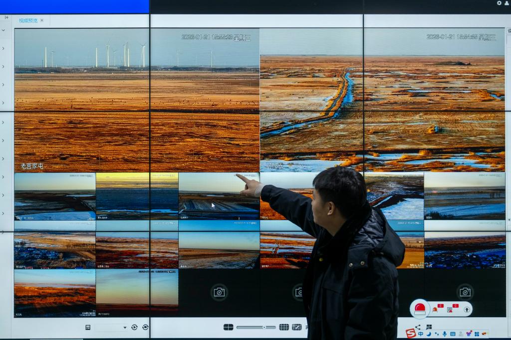 2026年1月21日,黑龙江省扎龙国家级自然保护区管理局监控中心。新华社记者 张涛 摄